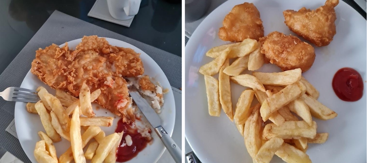 Beautiful fish and chips ,generous portion ,even kids is big ,enough for a adults small appetite .